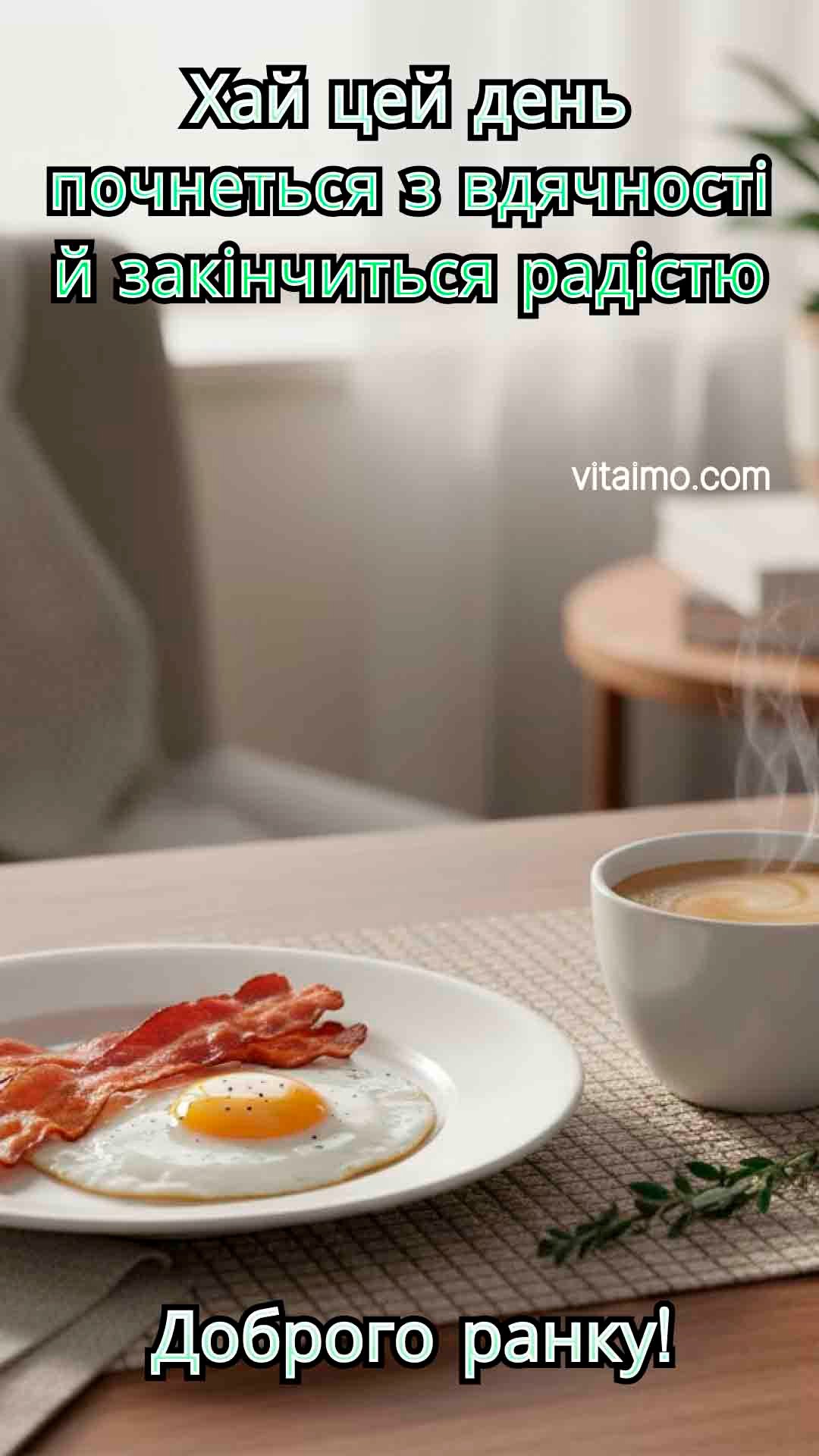 Листівка з побажанням доброго ранку та апетитного сніданку